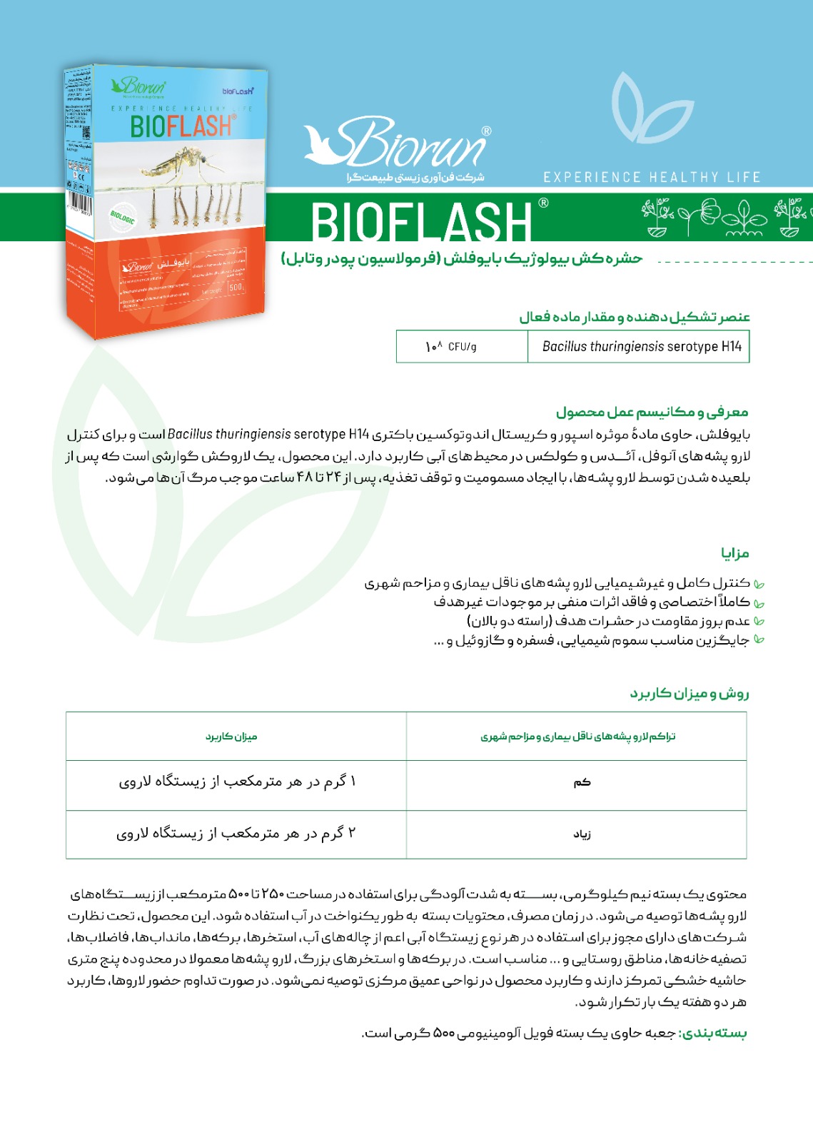 Home » گروه دهکده سبز شمالگان » لاروکش بیولوژیک بایوفلش- ۰/۵ کیلویی